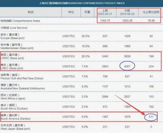 最近幾個(gè)月,國(guó)際海運(yùn)“異?;鸨?,運(yùn)費(fèi)大幅飆升。主要航空市場(chǎng)的運(yùn)費(fèi)也全面大幅上漲。特別是,美國(guó)海運(yùn)市場(chǎng)的運(yùn)價(jià)不斷創(chuàng)造新高。最近,美東航線已經(jīng)超過(guò)了4200美元/FEU的價(jià)格。南美航線增長(zhǎng)驚人,運(yùn)費(fèi)連續(xù)六周上漲,累計(jì)漲幅達(dá)275.6%。