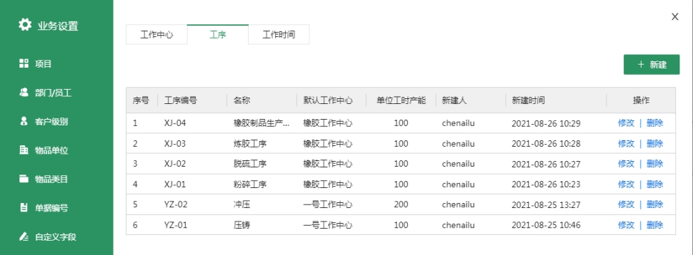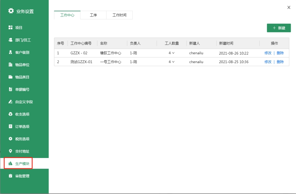 1.首先創(chuàng)建工作中心、工序,設(shè)置工作時(shí)間