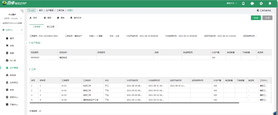 開始加工,點(diǎn)擊上線,工單中工序開工,報(bào)工及時(shí)記錄