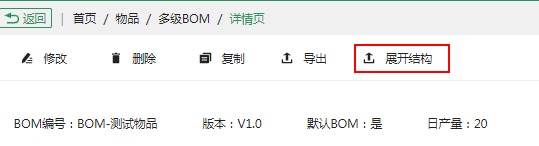 多級BOM創(chuàng)建后,可查看其展開結構